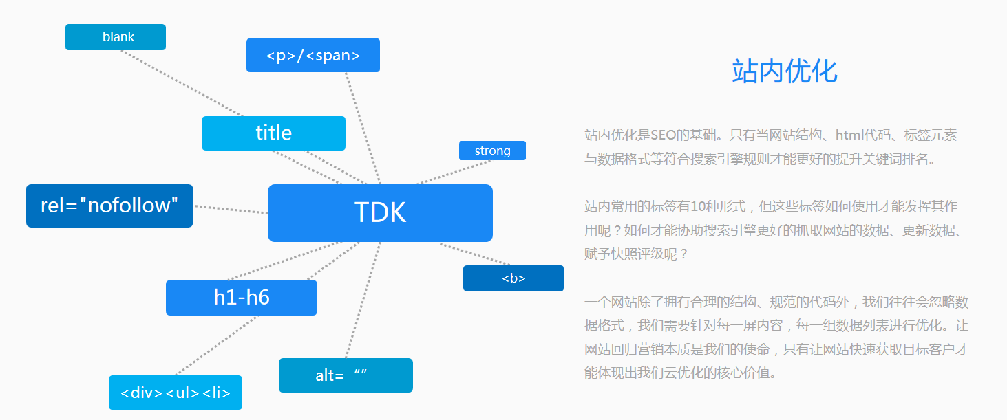 讓網站滿足用戶需求的同時滿足搜索引擎SEO規則!1、通過SEO技術讓網站結構、層次、內部標簽及HTML代碼等符合SEO規則。2、通過高質量外鏈和友鏈提升網頁快照的評級。引導快照參與搜索結果排序。3、優化搜索快照縮略圖,提升用戶有效檢索率,吸引用戶點擊我們的快照。4、優化用戶體驗、協協助用戶直達落地頁到的內容更符合用戶的需求。5、提升搜索引擎首頁或前三名的關鍵詞數量及網站整體的目標搜索量。