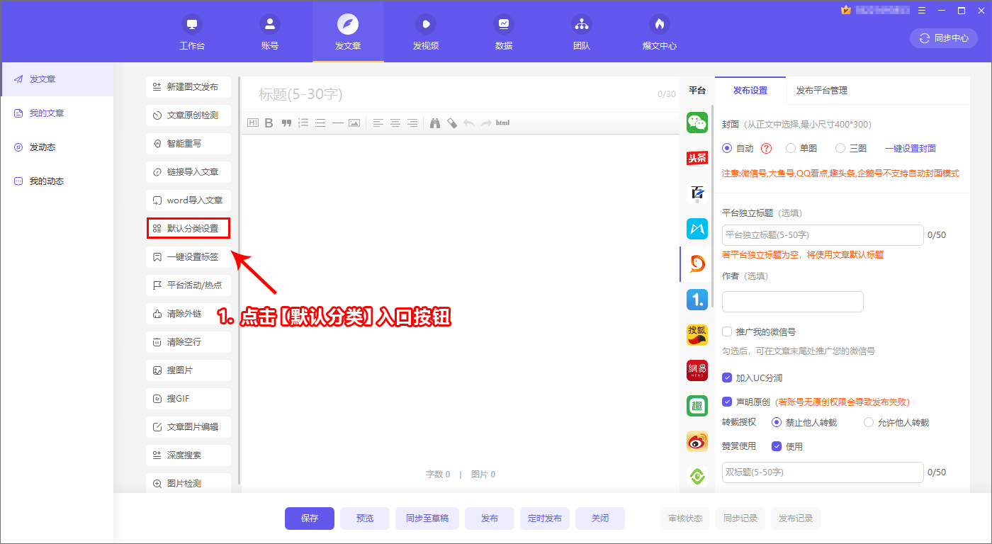 以前每次发内容,都需要手动逐个q_选择分类Q助手支持自动设|分c,讄好默认分c,之后每次发内容,都自动帮你设|好分类。默认分cL持设|多套,当需使用具体哪套分类时把q套分类讄为【默认分cR即可?