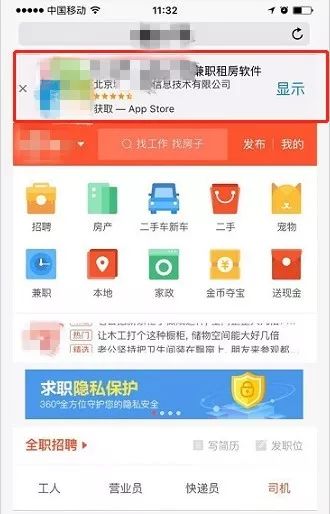 負(fù)面案例:頁(yè)面頂部出現(xiàn)帶APP引導(dǎo)內(nèi)容的的懸浮廣告